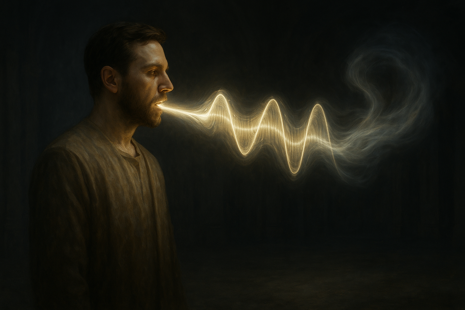 Make it visible in your mind. Imagine your own voice leaving your mouth—real, present, unmistakably you—yet you are not depleted by it. Now “see” that sound as a waveform, the visible shape of what was once only vibration; that is how the Word, the Son, embodies the Father’s voice in tangible form among us. Then imagine breath moving through that sound, giving it force, presence, and reach; that is the Spirit. One source, one word, one breath—distinguishable in action, inseparable in being. You do this every day without contradiction; the Scriptures are simply lifting your chin to see that Yahweh’s self-revelation is the archetype of the very pattern you live by.
