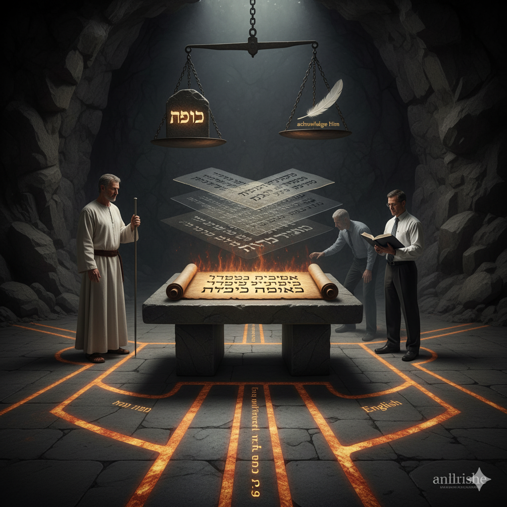 We begin with the original Hebrew text, drawn from the Aleppo and Leningrad codices. The first imperative is בְּטַח (bəṭaḥ — “trust,” Qal imperative masculine singular from בָּטַח), a command not of emotional reliance but of volitional loyalty. This is not the passive trust of a child hoping for protection; it is the active binding of one’s will to the covenantal logic of YHWH. The phrase אֶל־יְהוָה (el-YHWH — “unto YHWH,” preposition + proper noun masculine singular) directs this loyalty toward the covenantal name, not a generic deity. The next clause, בְּכָל־לִבֶּךָ (bəḵal-libbekha — “with all your heart,” preposition + noun masculine singular + 2ms suffix), invokes the seat of volition, not emotion. The Hebrew לֵב (lev) is not the sentimental heart of Western romance but the core of decision-making, discernment, and covenantal response. The command is forensic: bind your volition to YHWH with totality.