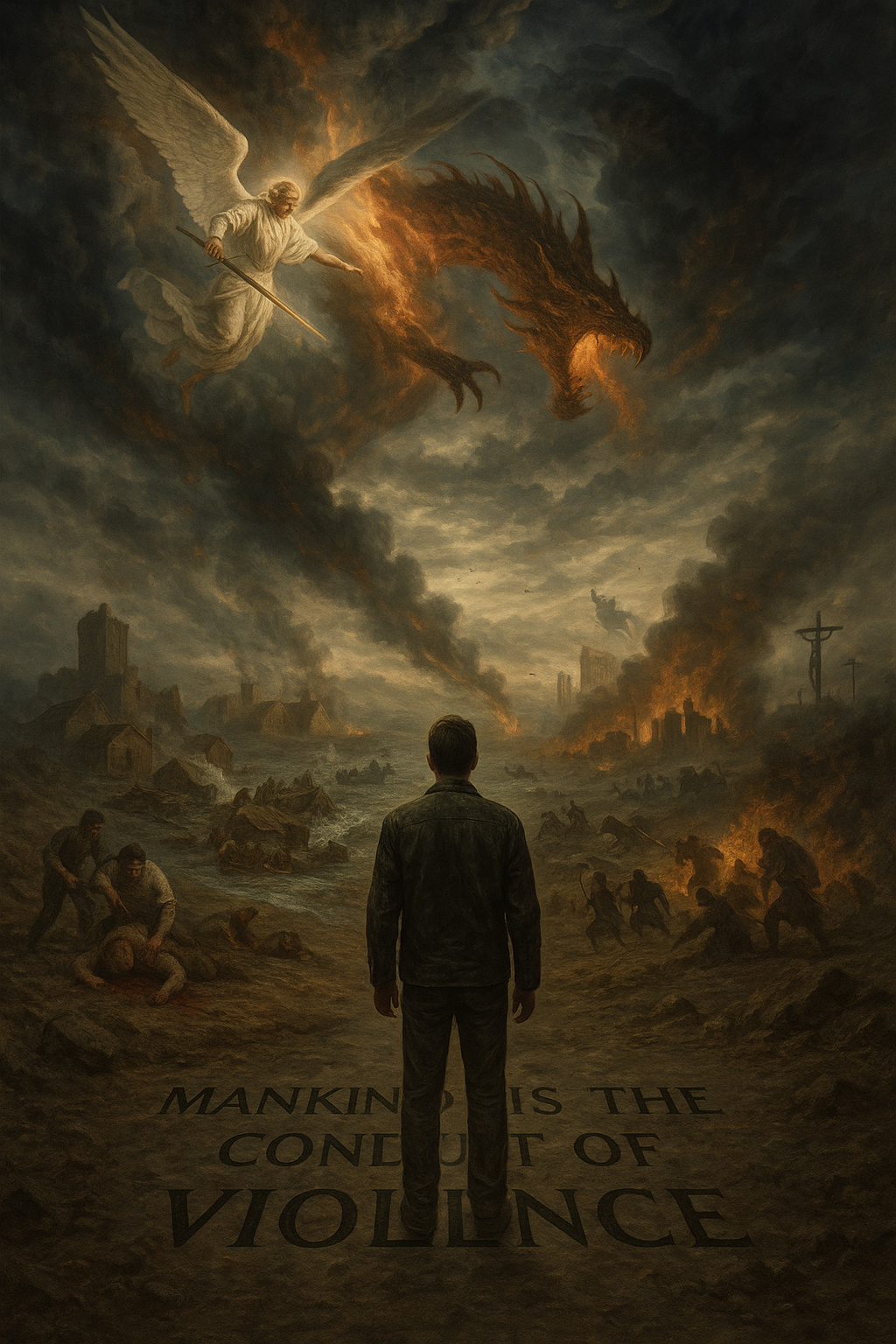 If we are honest about sequence, violence does not begin on Earth. It begins in heaven. John’s vision in Revelation depicts a war above: Michael and his angels against the dragon and his angels. The dragon is cast down. That is expulsion by force. That is an eviction conducted by power, not a negotiation secured by consensus. Before Cain ever lifted a hand, the cosmos had already witnessed conflict, defeat, and banishment. The Earth, in that telling, isn’t the birthplace of violence; it’s the battlefield where a defeated rebel takes his rage, and humanity becomes the conduit through which his malice and our own mingle and multiply.